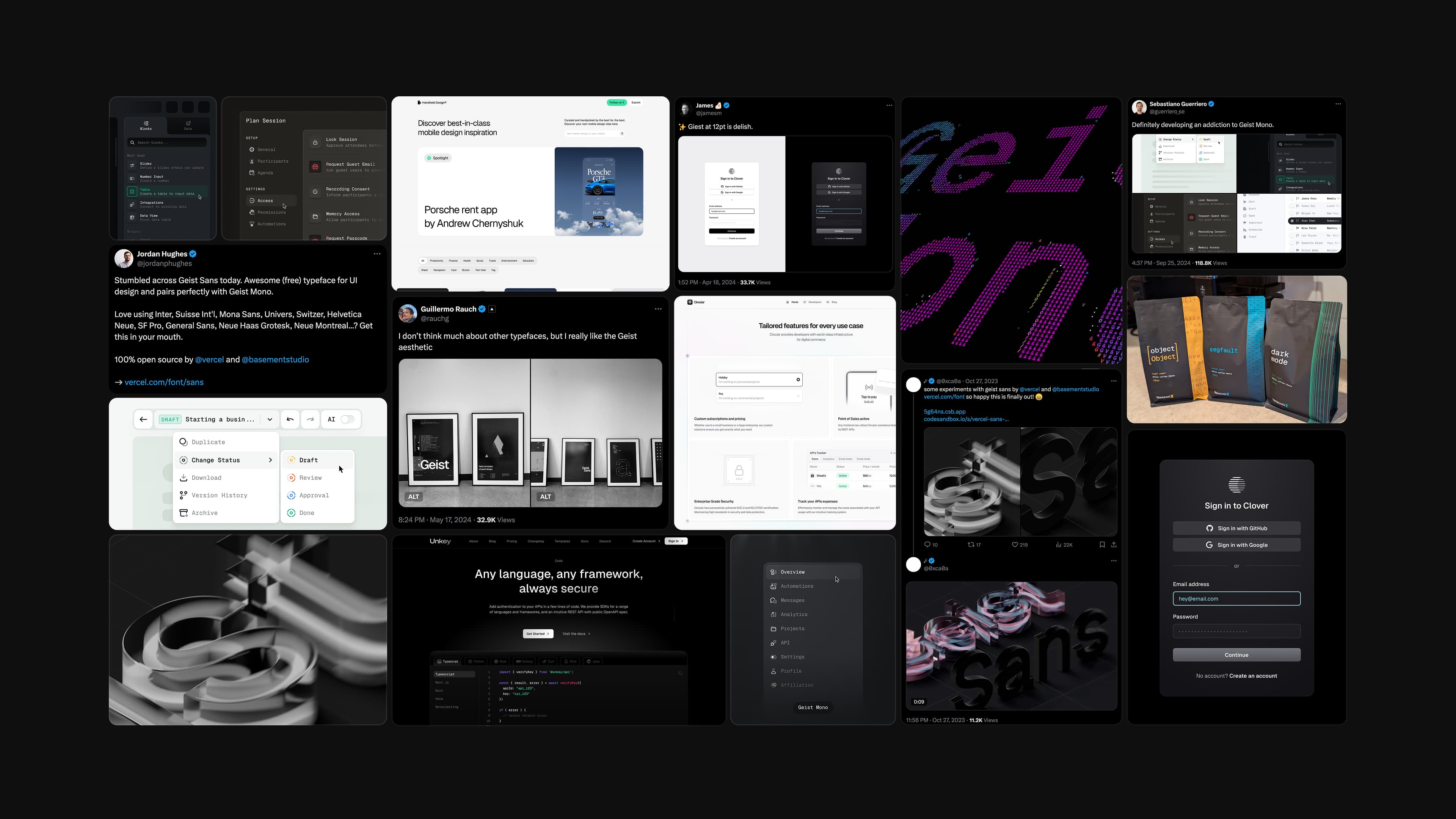 Geist was meticulously designed and developed by basement in collaboration with Vercel, for our dev community. Crafted for clarity and performance, Geist adapts to all screen sizes, making your designs timeless and scalable. Geist ensures a seamless experience across products, reinforcing Vercel’s identity at every touchpoint.